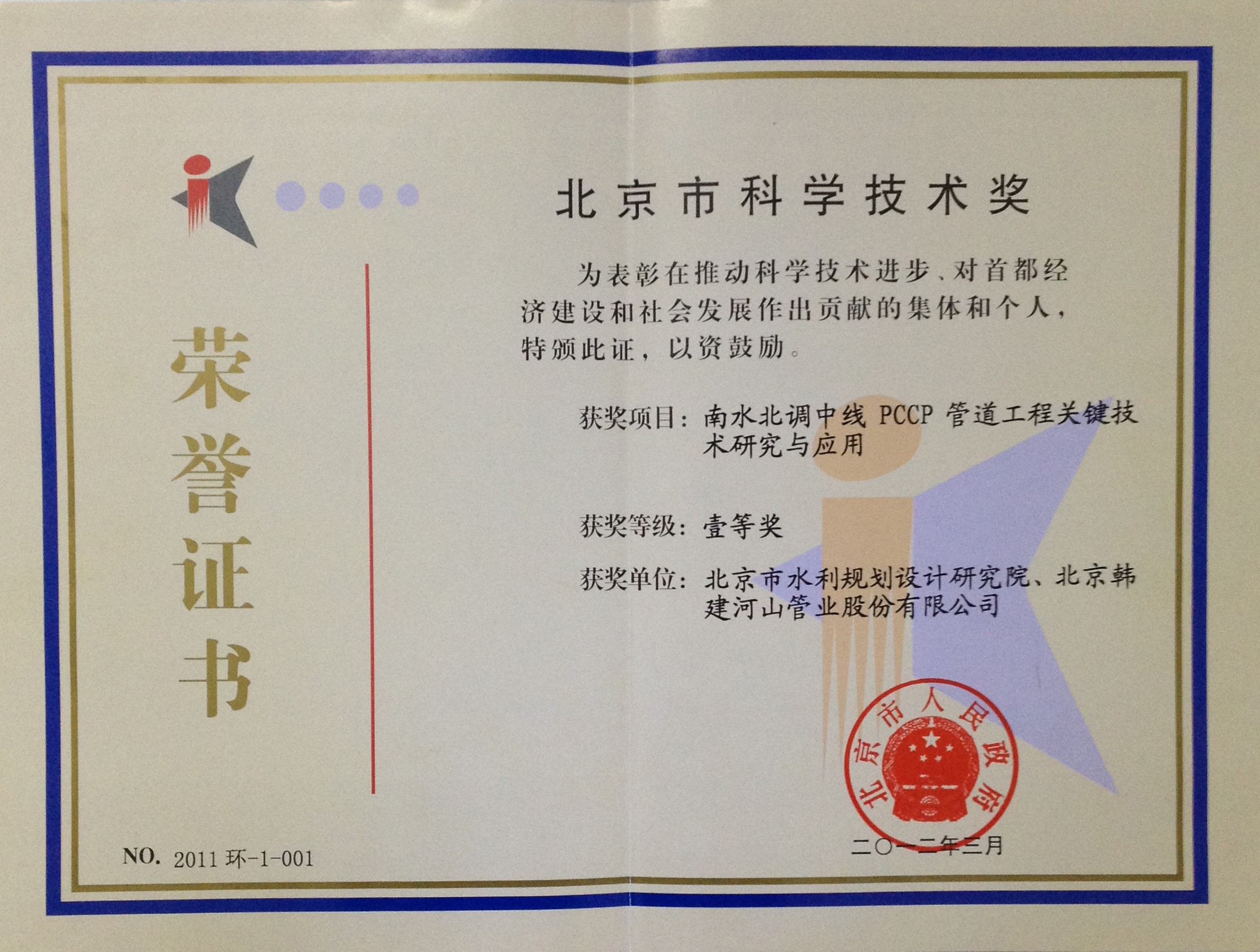北京市南水北调工程优秀成果一等奖 |