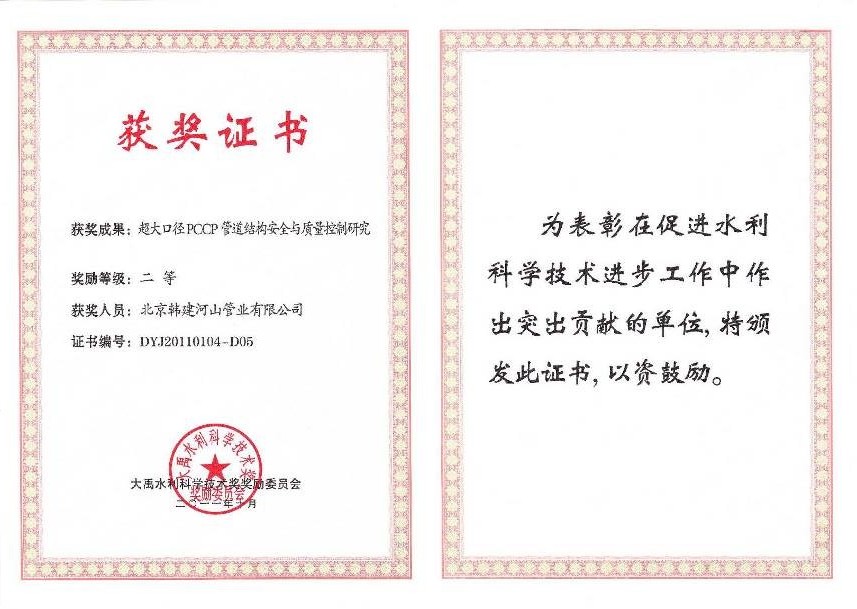 大禹水利科学技术二等奖 |