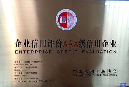AAA Certificate of Enterprise Credit Grade of China Water Conservancy Engineering Association |