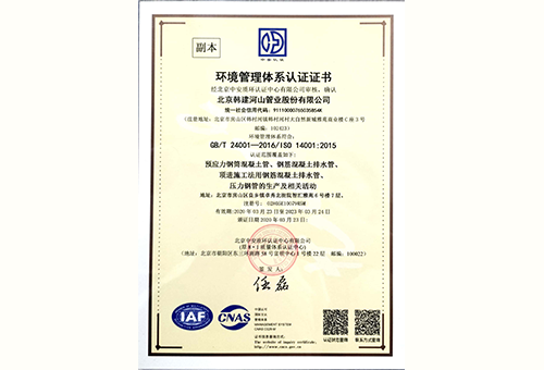 Environmental management system certification certificate |