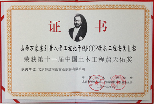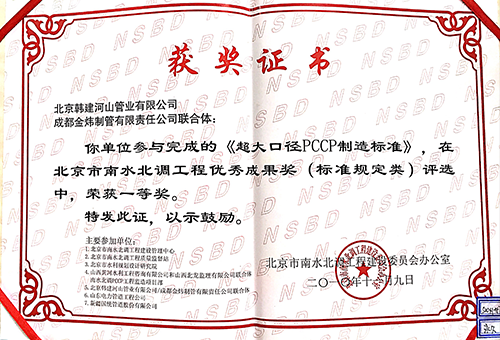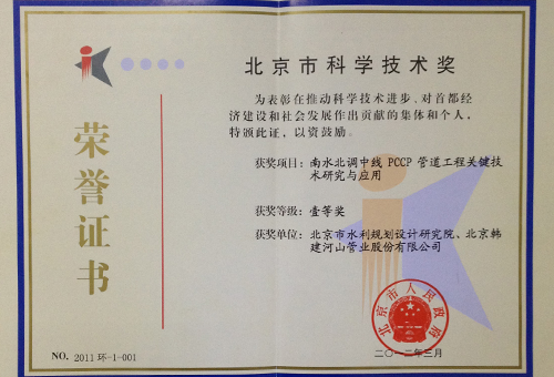 Beijing South-to-North Water Diversion Project Outstanding Achievement first prize |