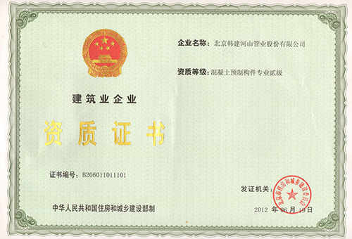 Professional secondary qualification certificate for concrete prefabricated components |