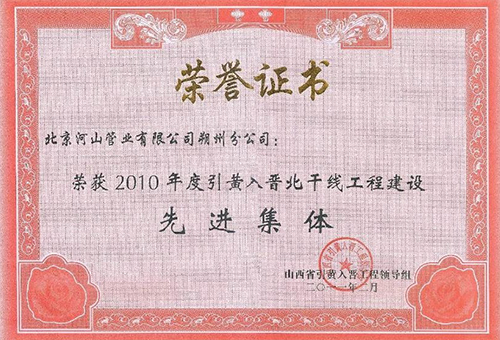 Diversion of Yellow River to Shanxi Project Construction Advanced Collective |