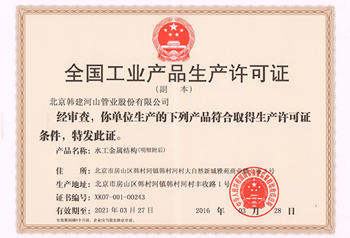 National license for the production of Industrial products (Water Pipeline) |