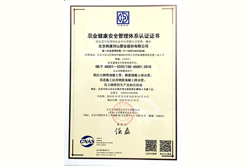 Occupational health and safety management system certification certificate |